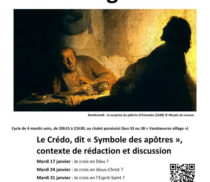 Cycle de 4 mardis soirs, de 20h15 à 21h30, au chalet paroissial (bus 33 ou 38 « Vandœuvres village »)
