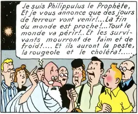 Extrait de "Lîle mystérieuse" de Tintin par Hergé : Philippulus le prophète menaçant