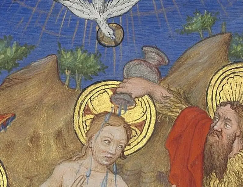 colombe de l'Esprit - détail de Maître de Marguerite d'Orléans. Baptême du Christ. Vers 1430. BNF, Paris