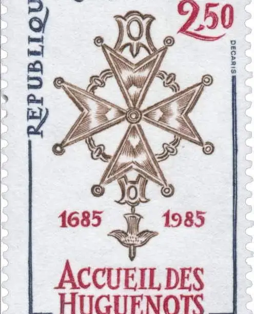 Timbre français commémorant l'accueil des huguenots, en particulier en Suisse.