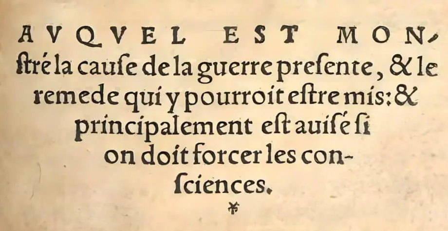 Voir le livre de Sébastien Castellion « Conseil à la France désolée: Auquel est monstré la cause de la guerre présente, et le remède qui y pourrait être mis: et principalement est avisé si on doit forcer les consciences«