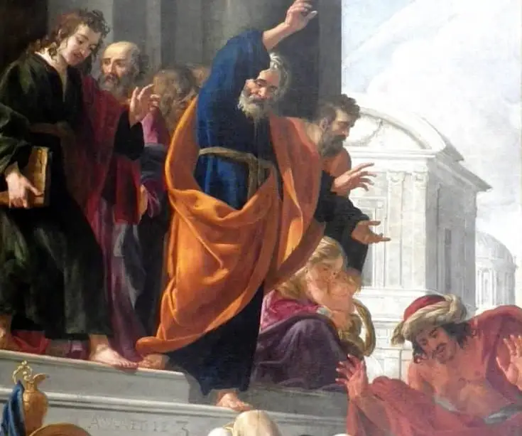 Pierre est une personne dont on peut sentir la personnalité à travers bon nombre d’épisodes du Nouveau Testament où il a un rôle de premier plan, selon tous les témoins pourtant pas toujours copains avec lui. Pierre n’est jamais dans la demi-mesure. Il fonce, ce qui est tantôt du courage tantôt une folie. Il est donc naturel de le voir en premier de cordée dans le réveil des disciples de Jésus à la Pentecôte : il harangue les foules avec succès, il organise tout le monde, il affronte les autorités hostiles, il fait même des miracles. Quel talent !